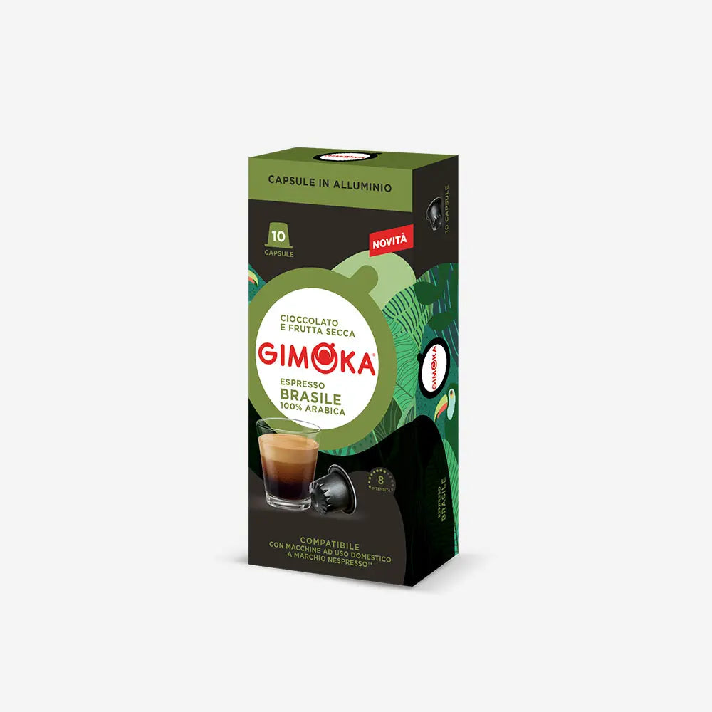 Gimoka Brasile Nespresso-compatible pods deliver a bold, full-bodied coffee made exclusively from the finest Brazilian Arabica beans. This single-origin medium roast offers a smooth, well-rounded profile with warm notes of milk chocolate, dried fruit, and a touch of roasted nut.The careful roasting process brings out the natural richness of Brazilian coffee, delivering a balanced flavor and a velvety crema that make every sip deeply satisfying.From the heart of Brazil to your cup, Gimoka Brasile embodies authenticity, quality, and heritage—crafted for those who crave a genuine coffee experience.